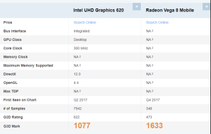 PassMark vaizdo plokšės bendros spartos vertinimas lyginant Intel ir AMD integruotą grafiką.
