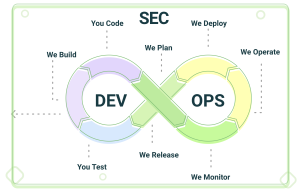 DevSecOps – sutrumpinimas „development, security, and operations“ – praktika siekiama saugumo priemones integruoti į kiekvieną aplikacijos kūrimo etapą: nuo pradinio architektūros dizaino, programinio kodo rašymo, testavimo iki diegimo ir paleidimo į gyvenimą. Kitaip nei klasikinėje aplikacijų vystymo praktikoje – kai saugumu susirūpinama tik tada kai aplikacija paruošta paleisti į gamybą (angl. production) arba, dar blogiau, kai pirmas vartotojas sušunka apie problemą. Klasikiniu atveju saugumas paliekamas atskiroms saugumo testavimo arba kokybės užtikrinimo – QA komandoms, tuo tarpu DevSecOps praktikoje saugumas yra kiekvieno programuotojo, DevOps‘o ir administratoriaus atsakomybė.